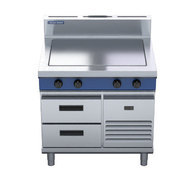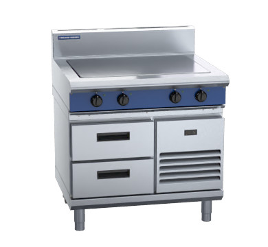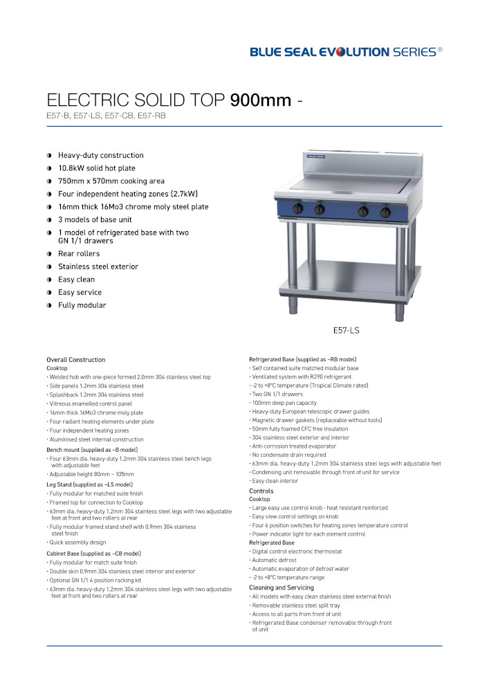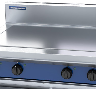 Blue Seal Evolution Series 900mm Solid tops come as stand-alone hobs, or with a choice of four base units cabinet base, leg stand, refrigeration base, or oven base (electric static or electric convection).